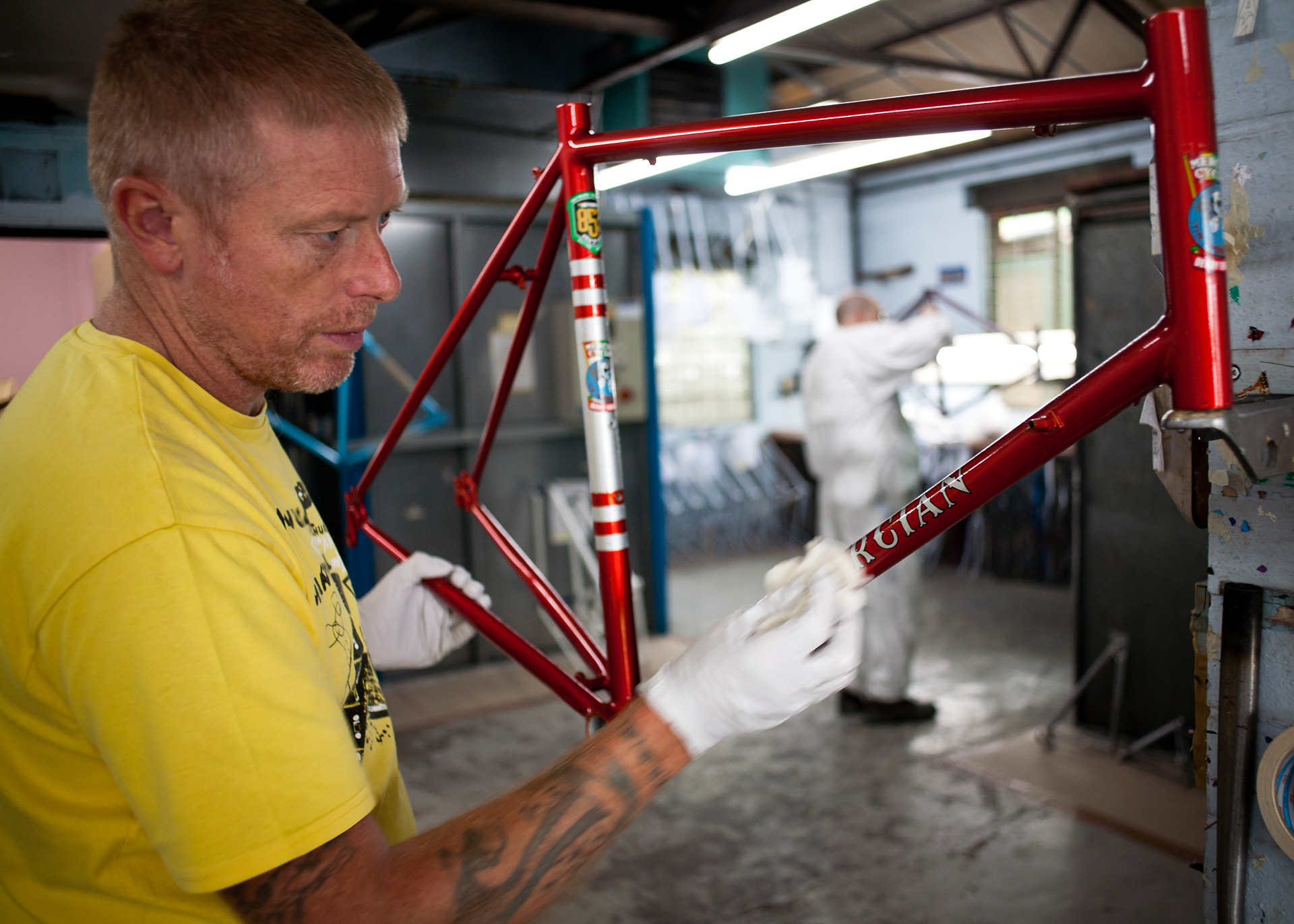This project was shot in 2011, in the run-up to the London Olympics. British cycling was taking the public consciousness by storm: Olympic glories from Beijing and Tour De France stage wins were propelling bicycle sales to levels not seen in a generation. Mercian Cycles was a British manufacturing success story and, as I was working on several stories about traditional manufacturing, regional economies and craft skills, I thought this would be a great place to make a photo essay. Being a life-long cycling fan may have a had something to do with it too...